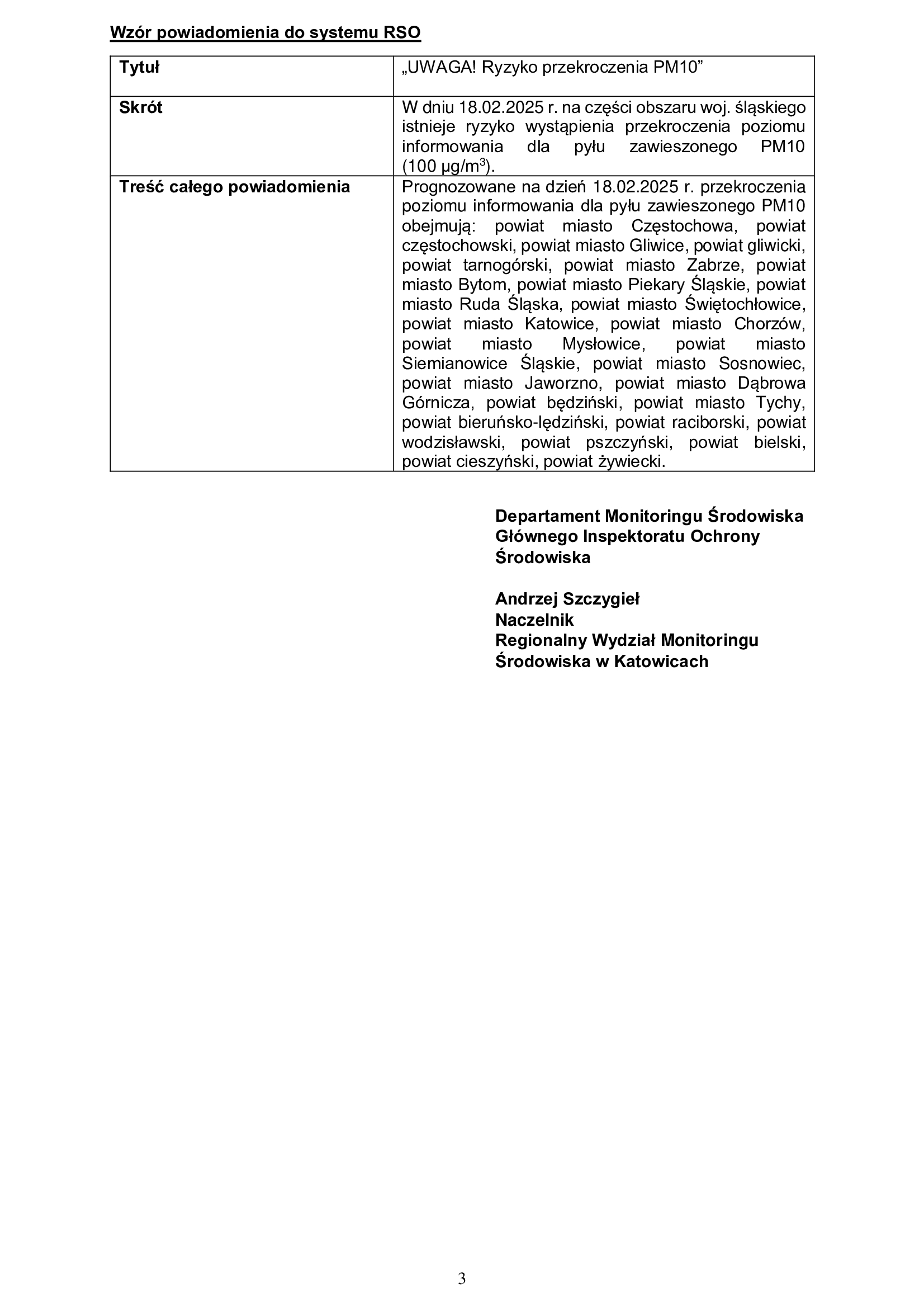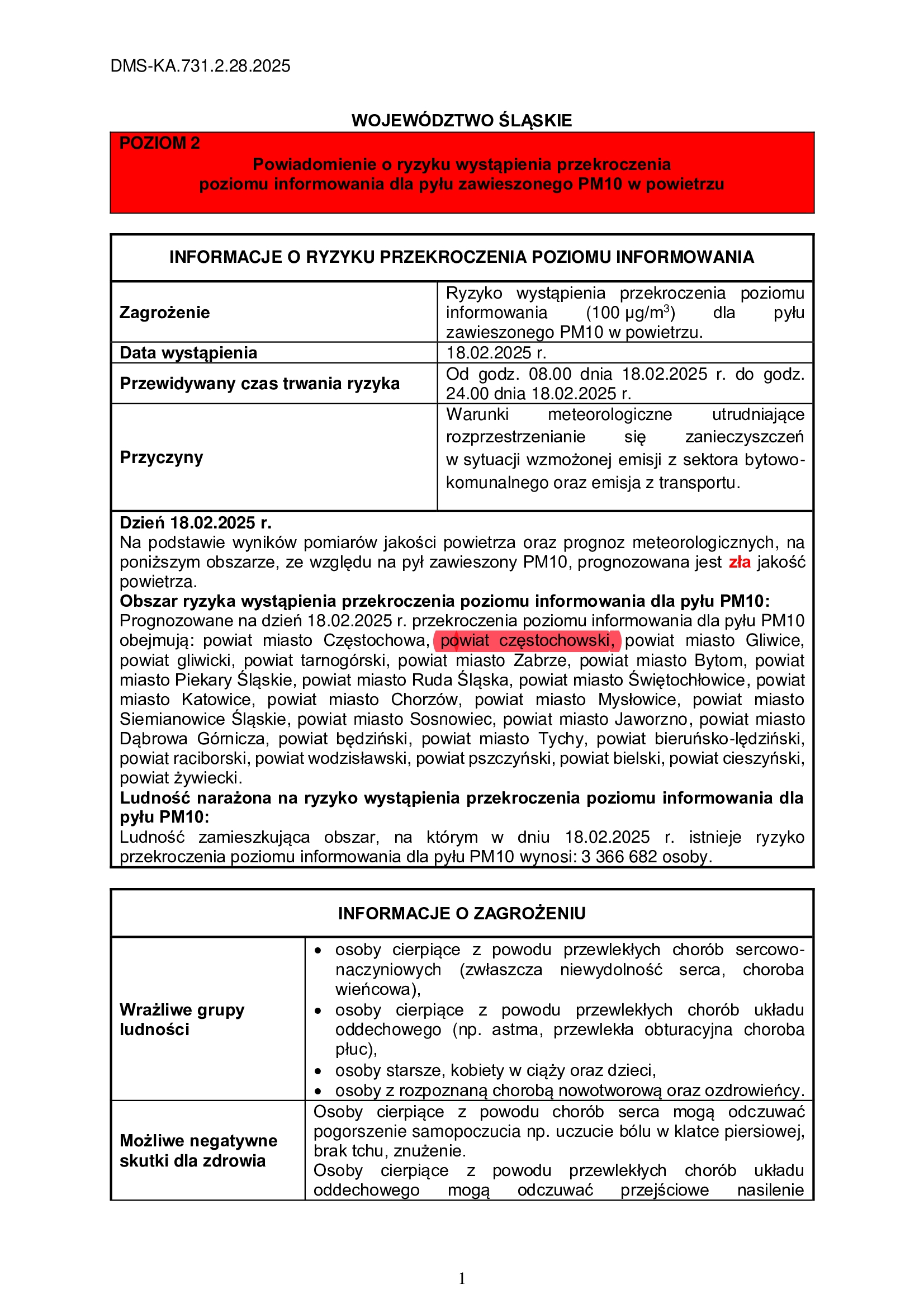 Ostrzeżeniem przed złym stanem powietrza. Ryzyko wystąpienia przekroczenia poziomu pyłu PM10 w powietrzu