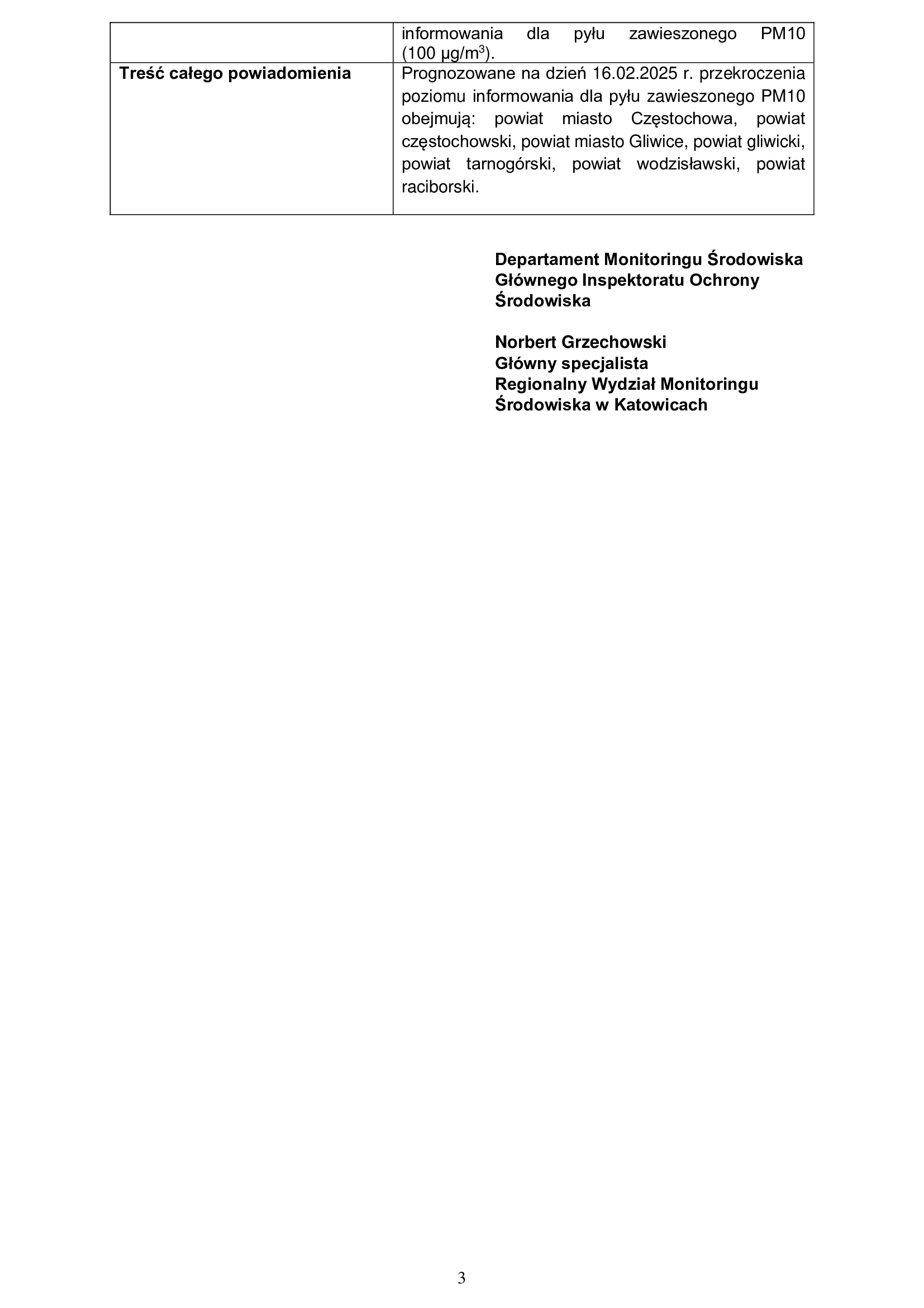 Ostrzeżeniem przed złym stanem powietrza. Ryzyko wystąpienia przekroczenia poziomu pyłu PM10 w powietrzu