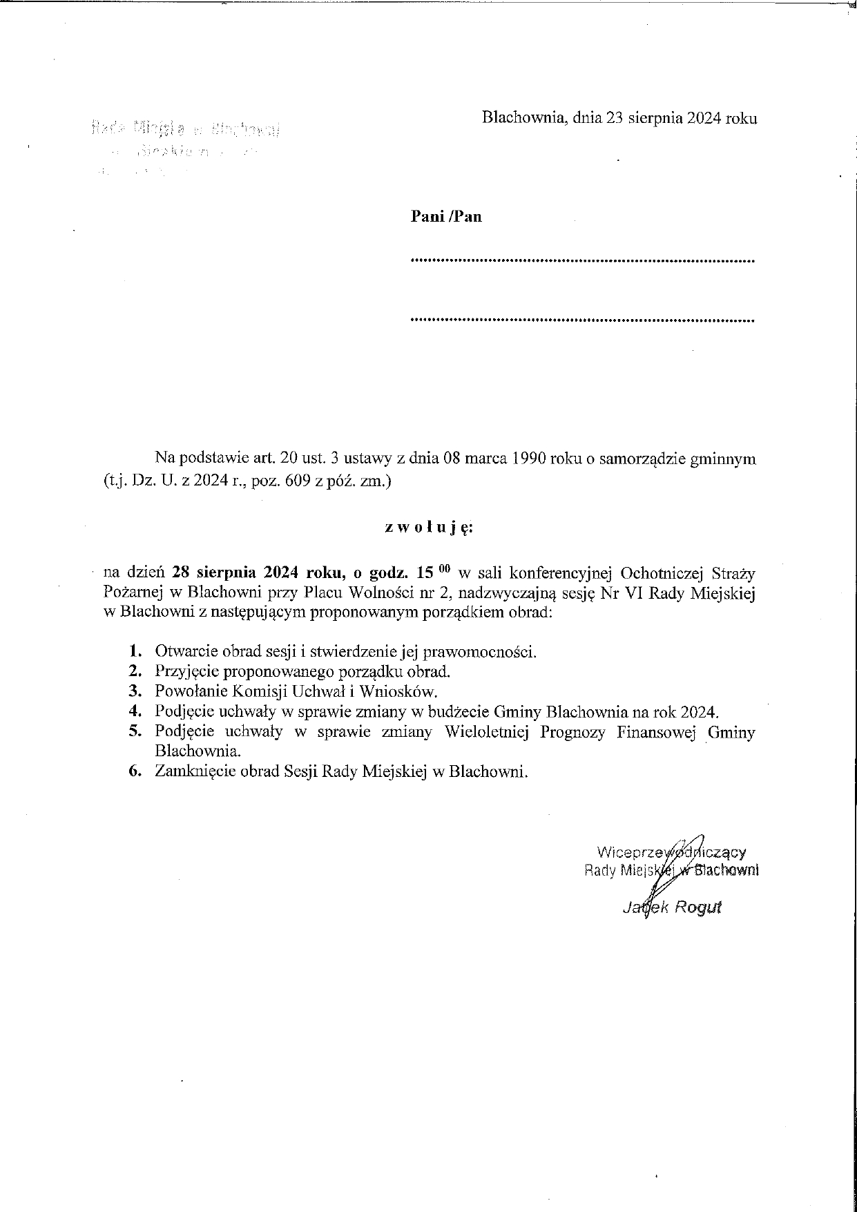 VI Sesja Rady Miejskiej w Blachowni zwołana na środę 28 sierpnia