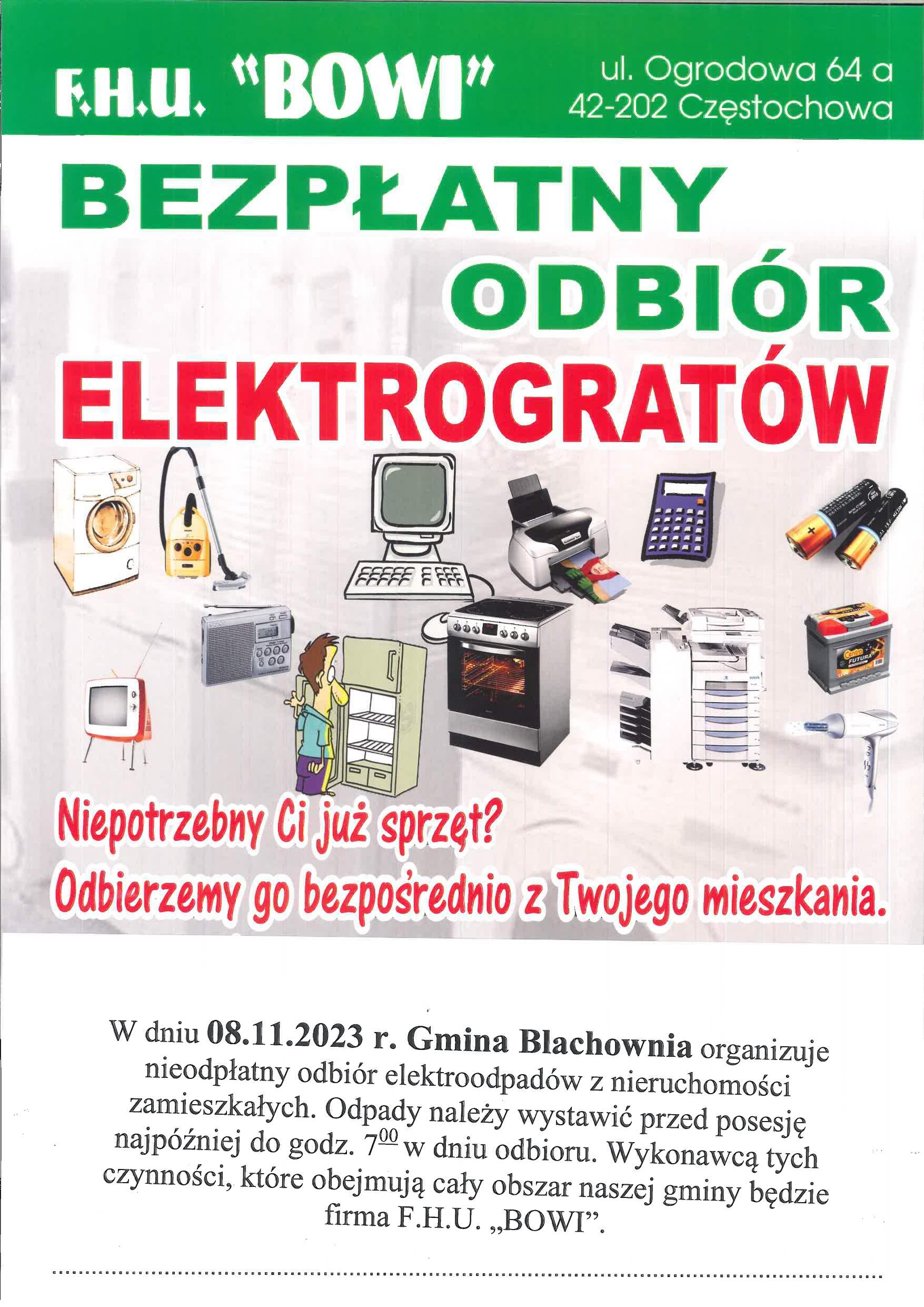 W dniu 8 listopada 2023 r. odbędzie się bezpłatny odbiór Elektrogratów